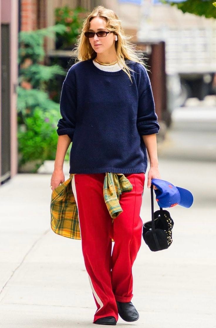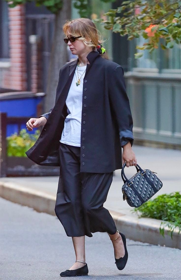 Reading this story on The Cut was one of those sincerely joyful moments as a fashion lover where you realize everyone else is thinking the same thing as you. Jennifer Lawrence’s street style has been VERY good for a long time, and there’s lots to take notes on.