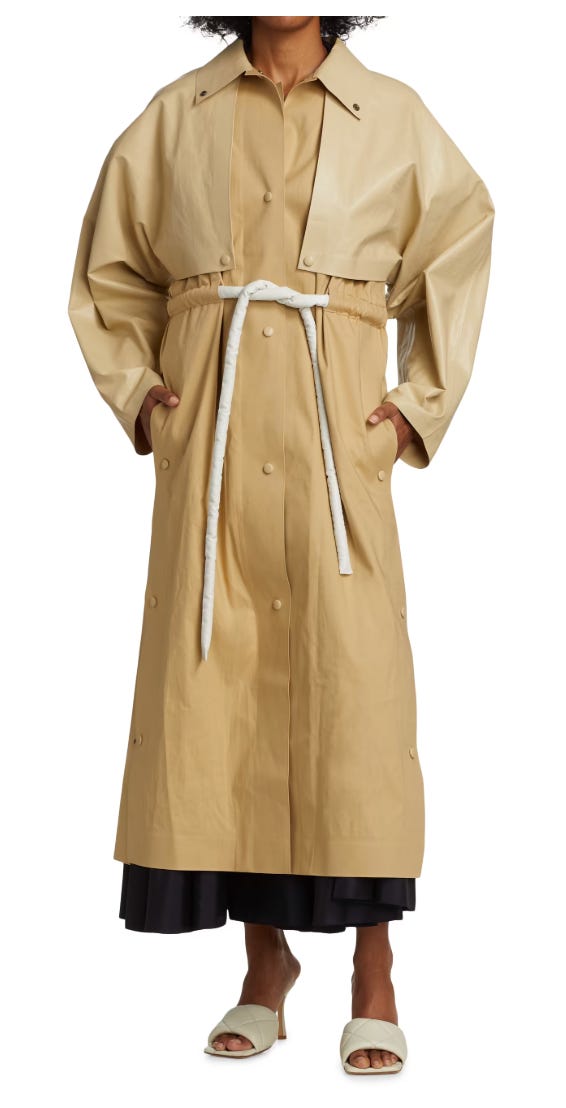 I’m very into this practical, elevated coat that’s on sale for 77%. You could pair with a white linen blazer underneath.