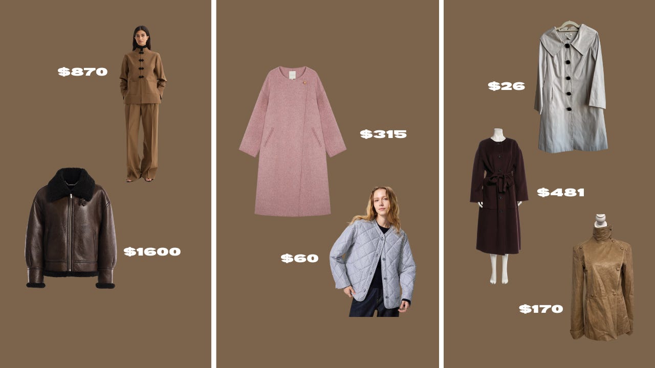 Splurge: Elevated take on a blazer, Shearling stunner / Save: Collarless pink, Layering hero / Secondhand: Oversized collar trench, Preloved Ulla Johnson, My fav secondhand coat brand