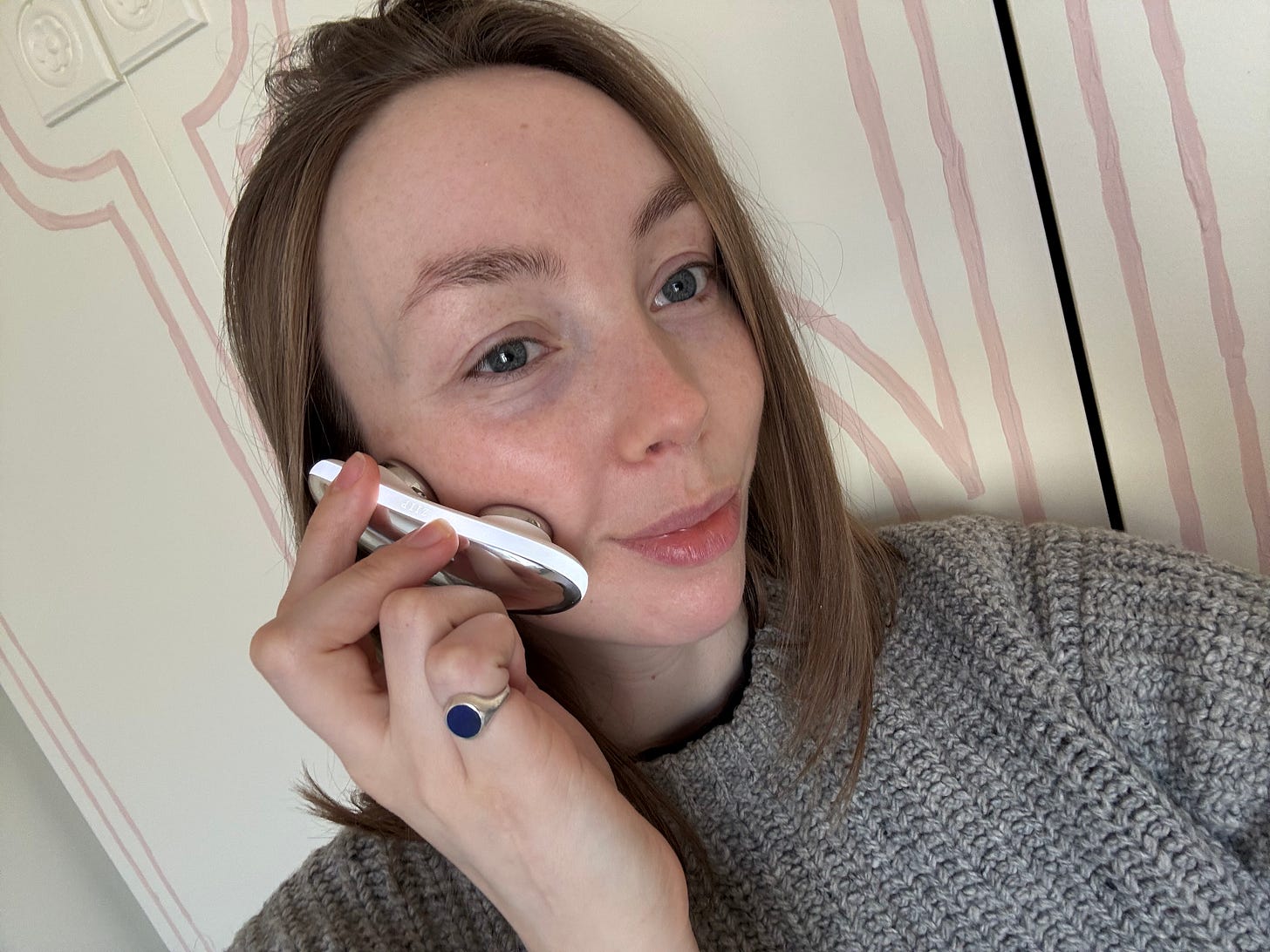 It's an at-home microcurrent device that uses electrical currents naturally found within the body to treat various skin concerns from lifting and firming to combatting problem skin.It sounds intense but is actually incredibly easy to use. You can sync the device to the ZIIP app that has programmed 17 different treatments. Each treatment has a completely unique waveform, which determines how the electrical current interacts with your skin, therefore tailoring your results depending on what your skin needs that day (I'm obsessed with the 4-minute facial for mornings and the brightening treatment before events).