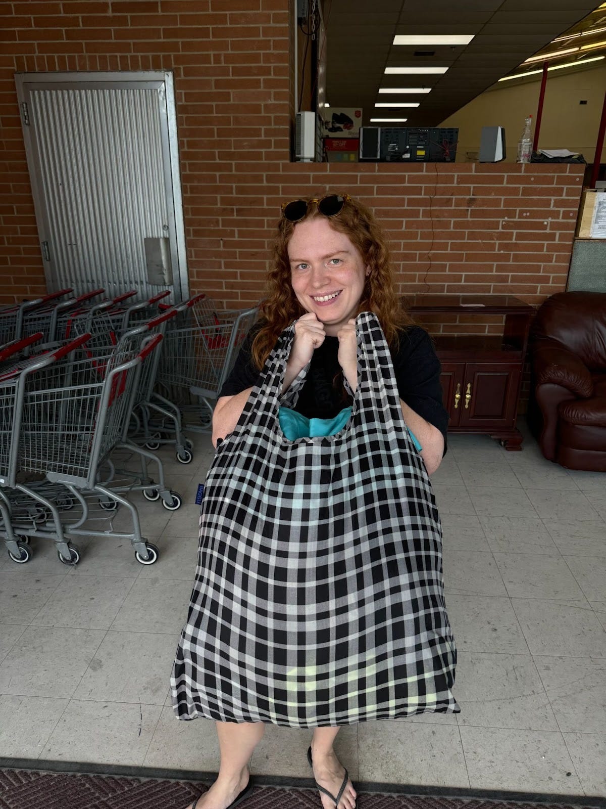 Most thrift stores do not have bags. I have these in every size and always have at least a couple on me. They fold flat and are easy to wash. The bigger size (see below) is a godsend for 50% off days.