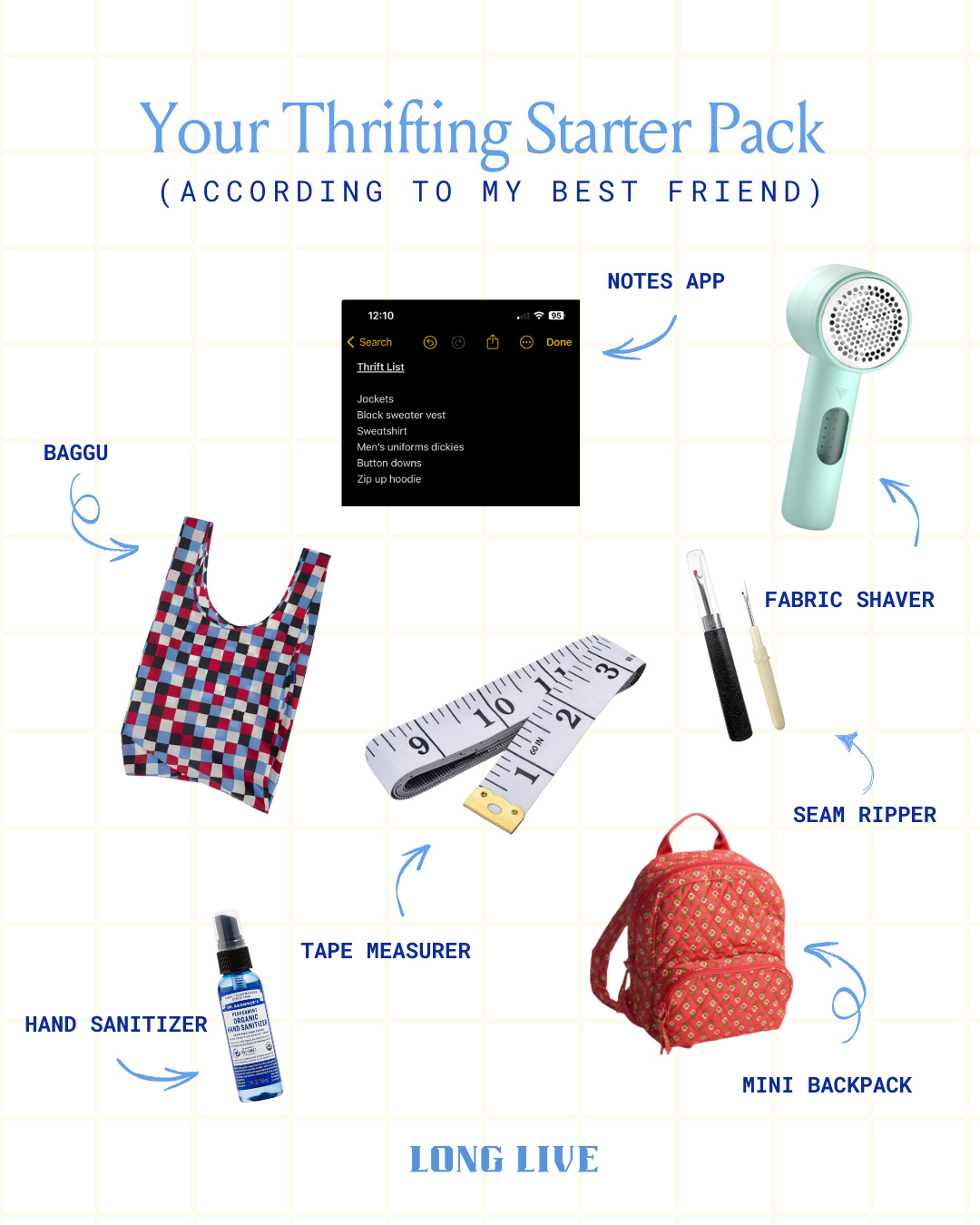 A year ago Erika and I decided to go a year without buying new clothes, and while it’s no longer a hard and fast rule, I rarely buy new clothing at all anymore. I’ve spent years refining my thrifting practice and now buy pretty much everything second hand. Last summer I took my dad to Salvation Army and when I pulled out my own bag and hand sanitizer after we checked out he said “you really have this down to a science don’t you?” I do! I reach for the products below again and again. They are my thrifting starter pack, and I hope they make buying second hand easier for all of you!