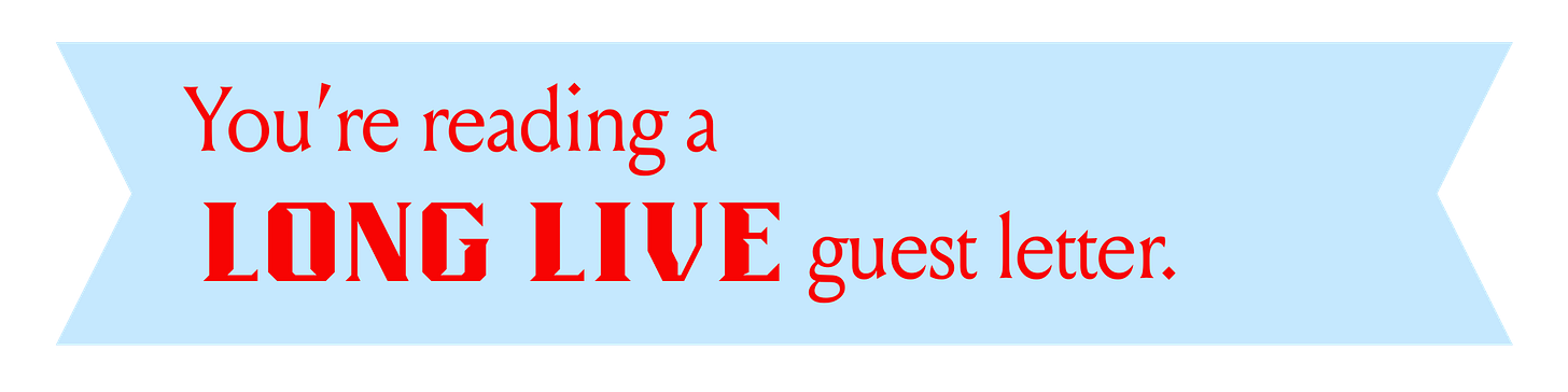 Ruby's Recs is a professional thrifter. And my best friend. But for the sake of today’s letter, someone with thousands of hours of practice shopping secondhand IRL, long before the teens in baggy jeans took to the racks. She takes thrifting, as with most things in life, quite seriously, and all the better for us! Plus, Ruby writes the best book Substack out there. Enough gushing. I feel lucky she’s here as part of the Long Live guest series, in between squeezing in new godmother duties.